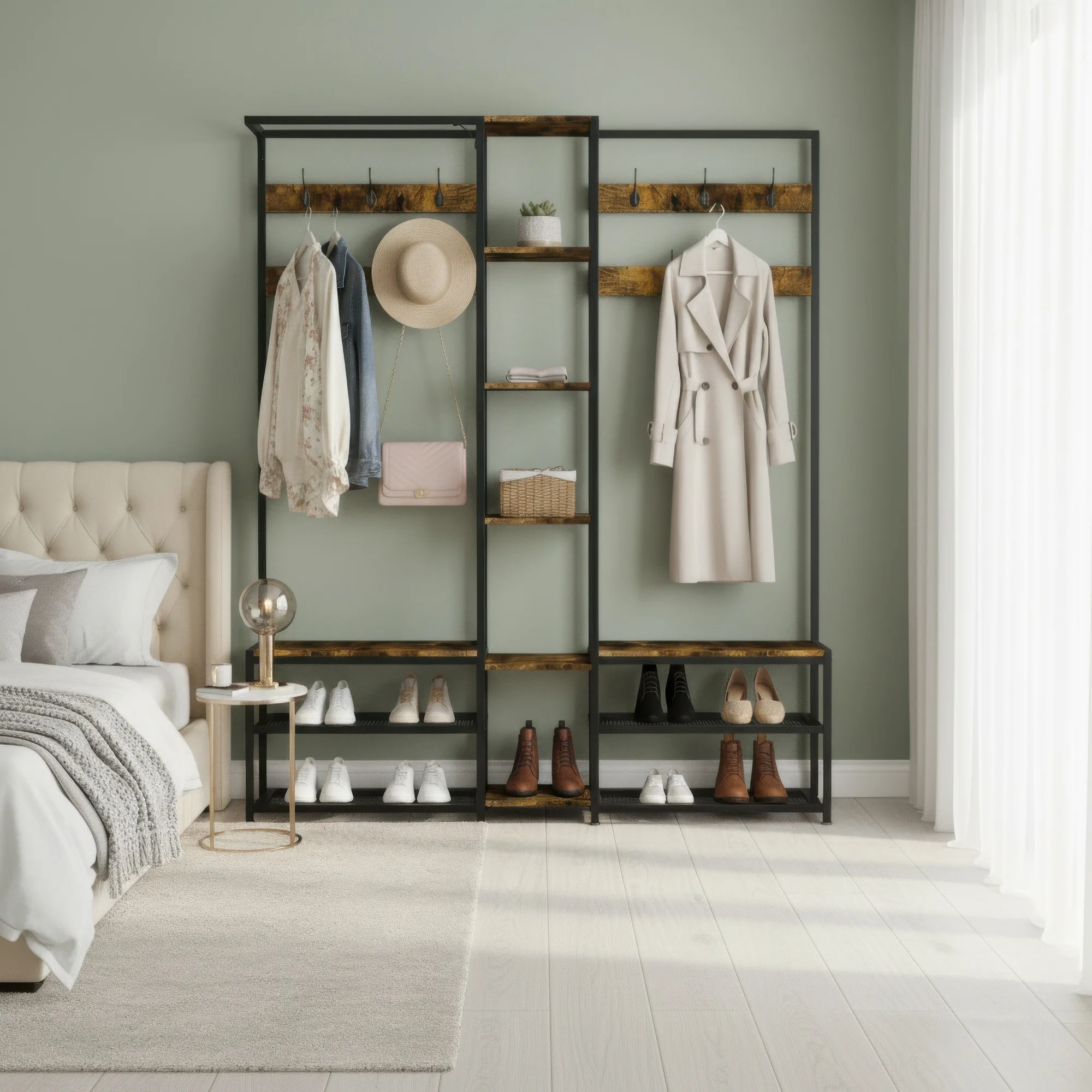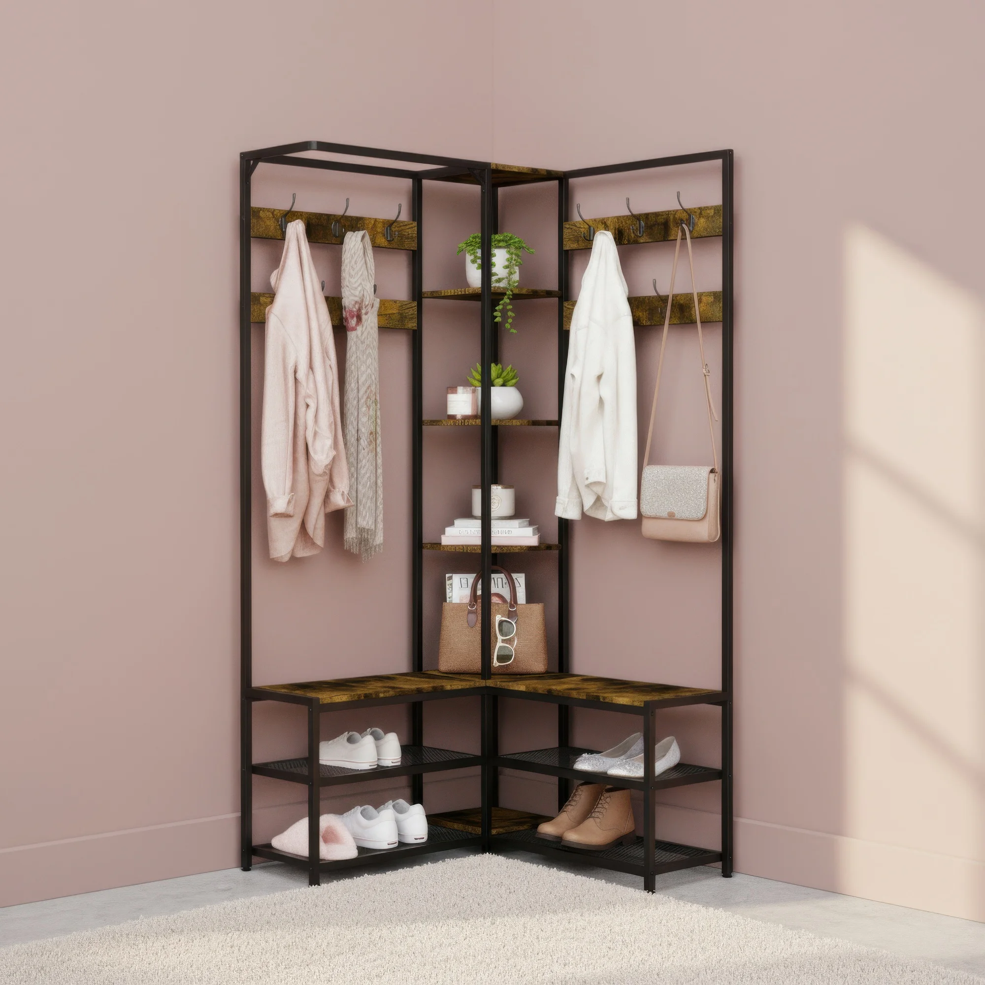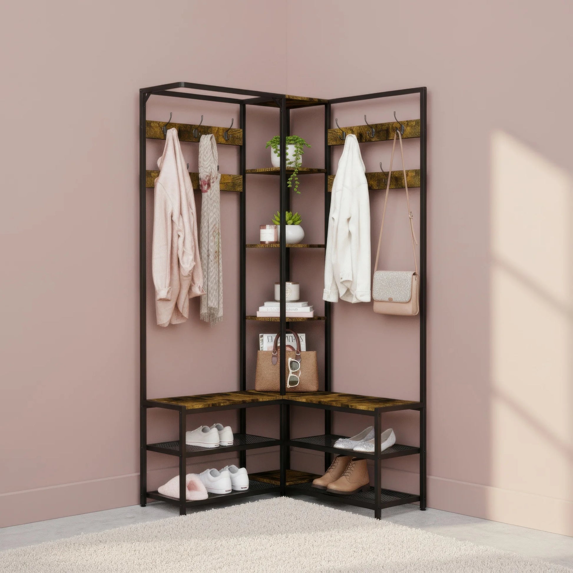 Transform your entryway into a tidy, welcoming hub with a corner coat rack that combines practical storage with stylish, industrial design.