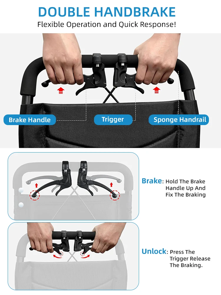 - Robust wheels adapt to varied terrains and inclines, while the rear-handbrake gives you reliable, intuitive stopping on every surface.