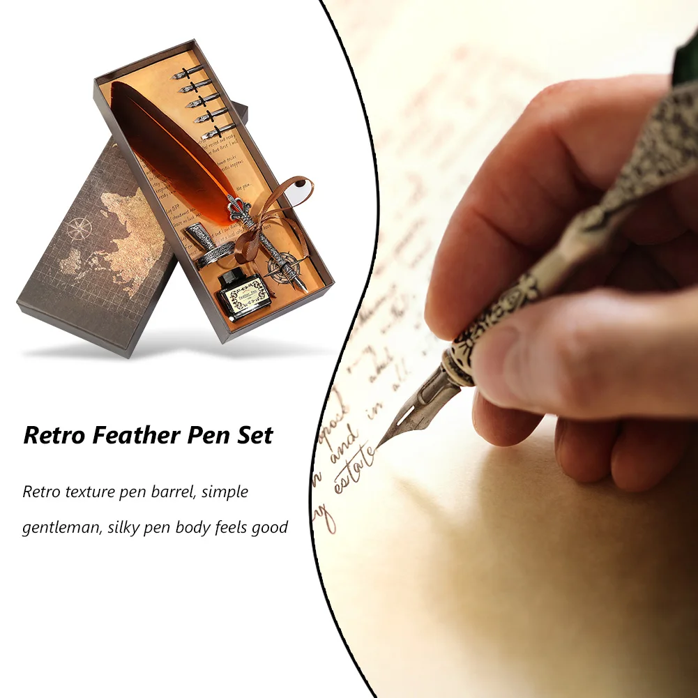 - This gift-ready boxed set gives you everything you need: the feather pen, an empty ink bottle for your preferred ink, and five extra nib tips.